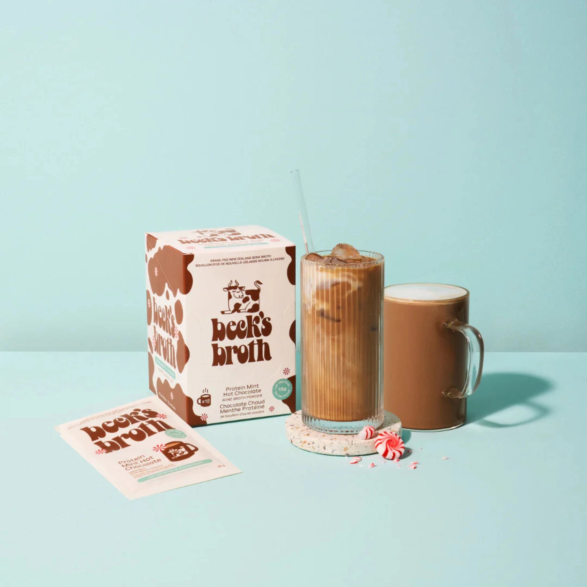 Meet this Mint Hot Chocolate under the mistletoe as you indulge in irresistible decadence. Beck's Broth's classic hot chocolate takes a cozy twist with refreshing mint, here to warm you up, cheer you on, and give your digestive system some sweet love. Give the gift of 15g of protein and gut nourishment this holiday season!