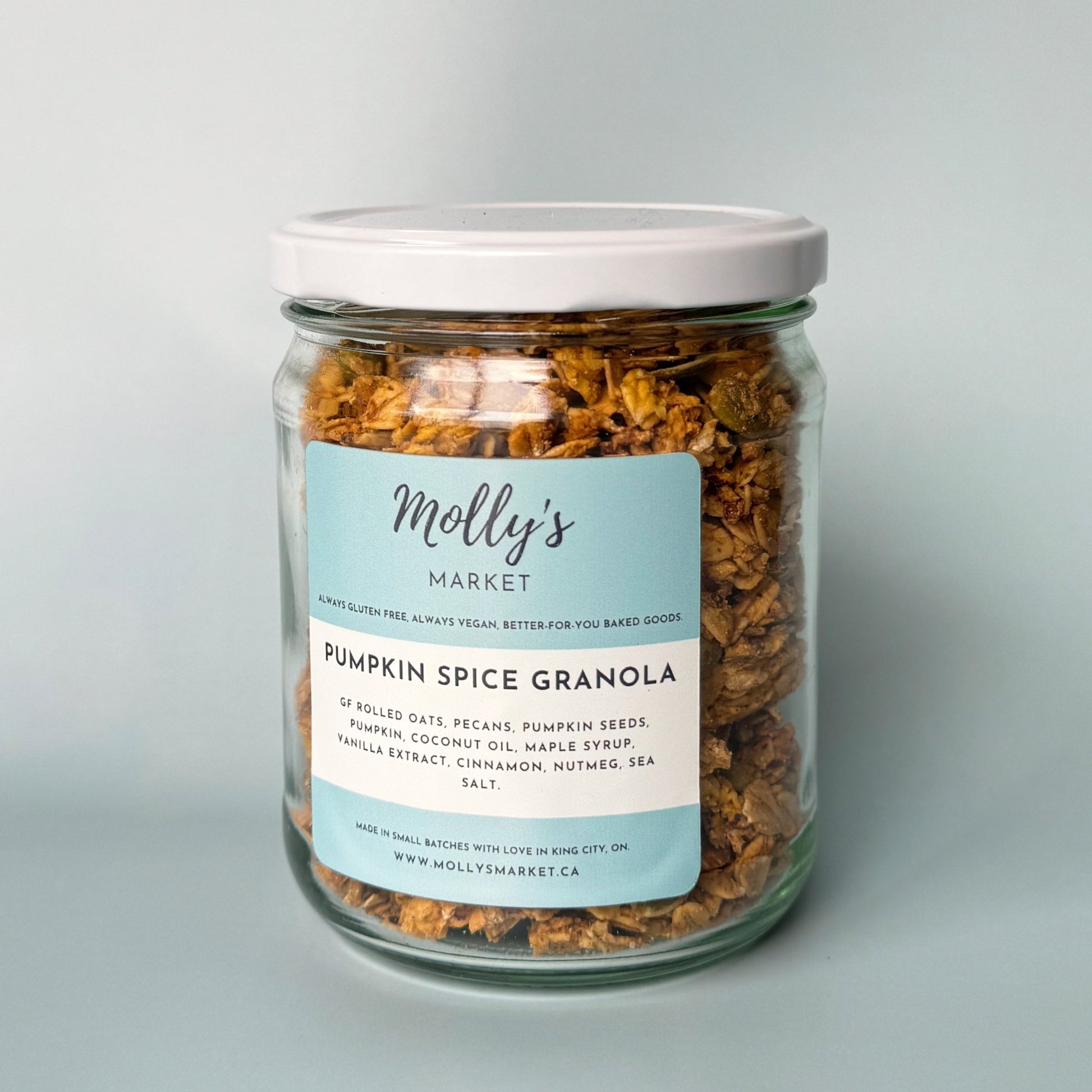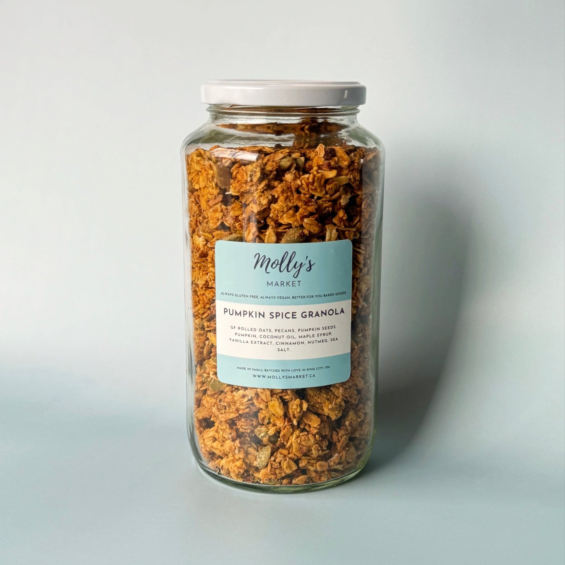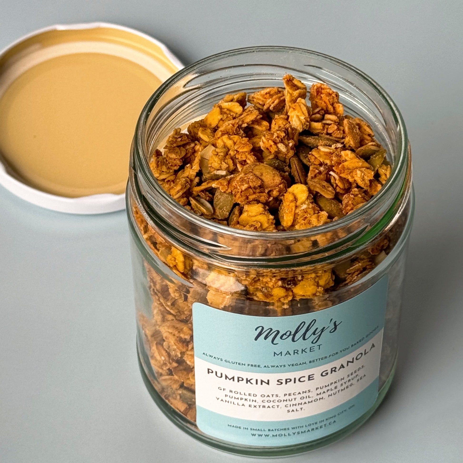 Ingredients: Gluten-free Rolled Oats, Pumpkin, Pecans, Maple Syrup, Pumpkin Seeds, Coconut Oil, Vanilla Extract, Pumpkin Pie Spice, Sea Salt