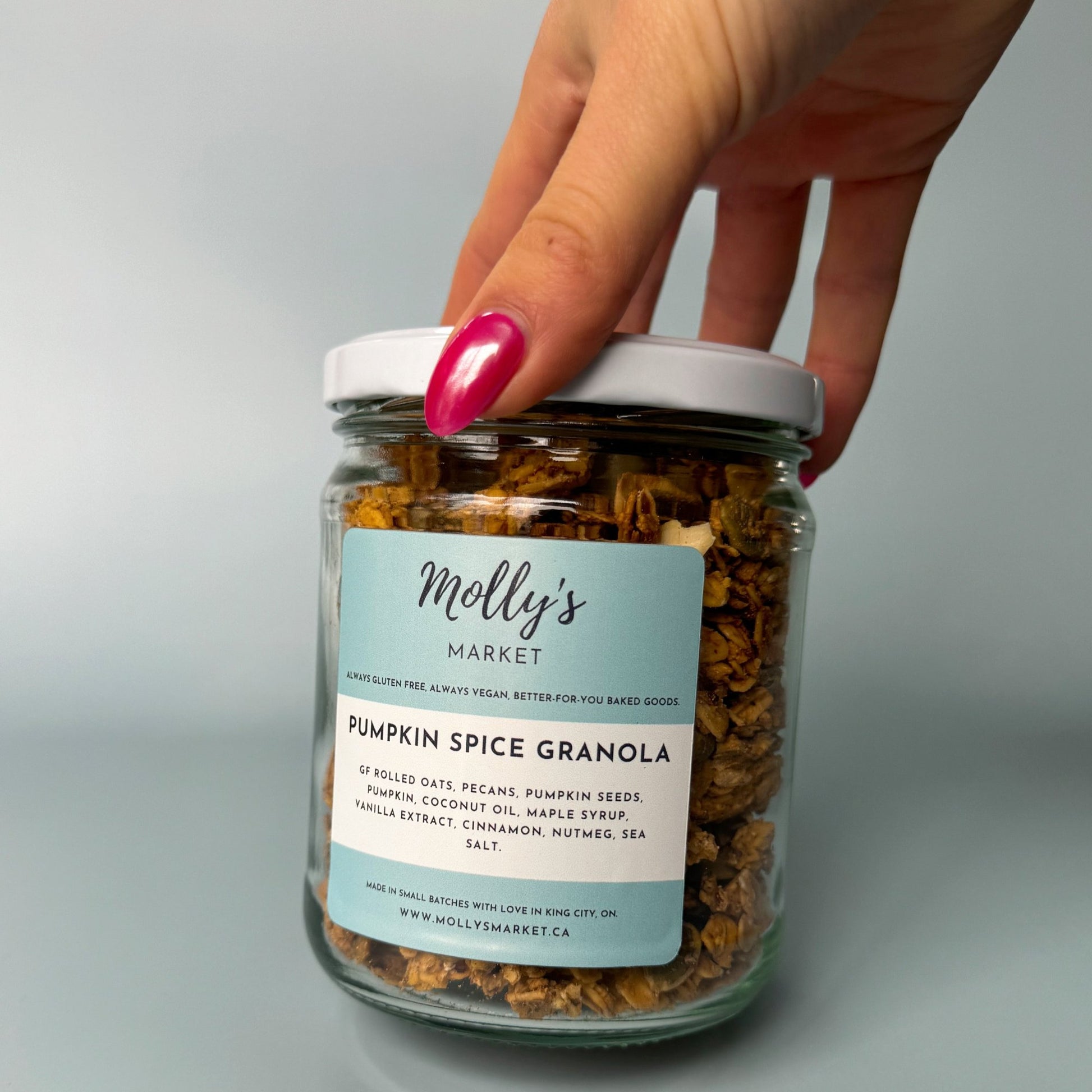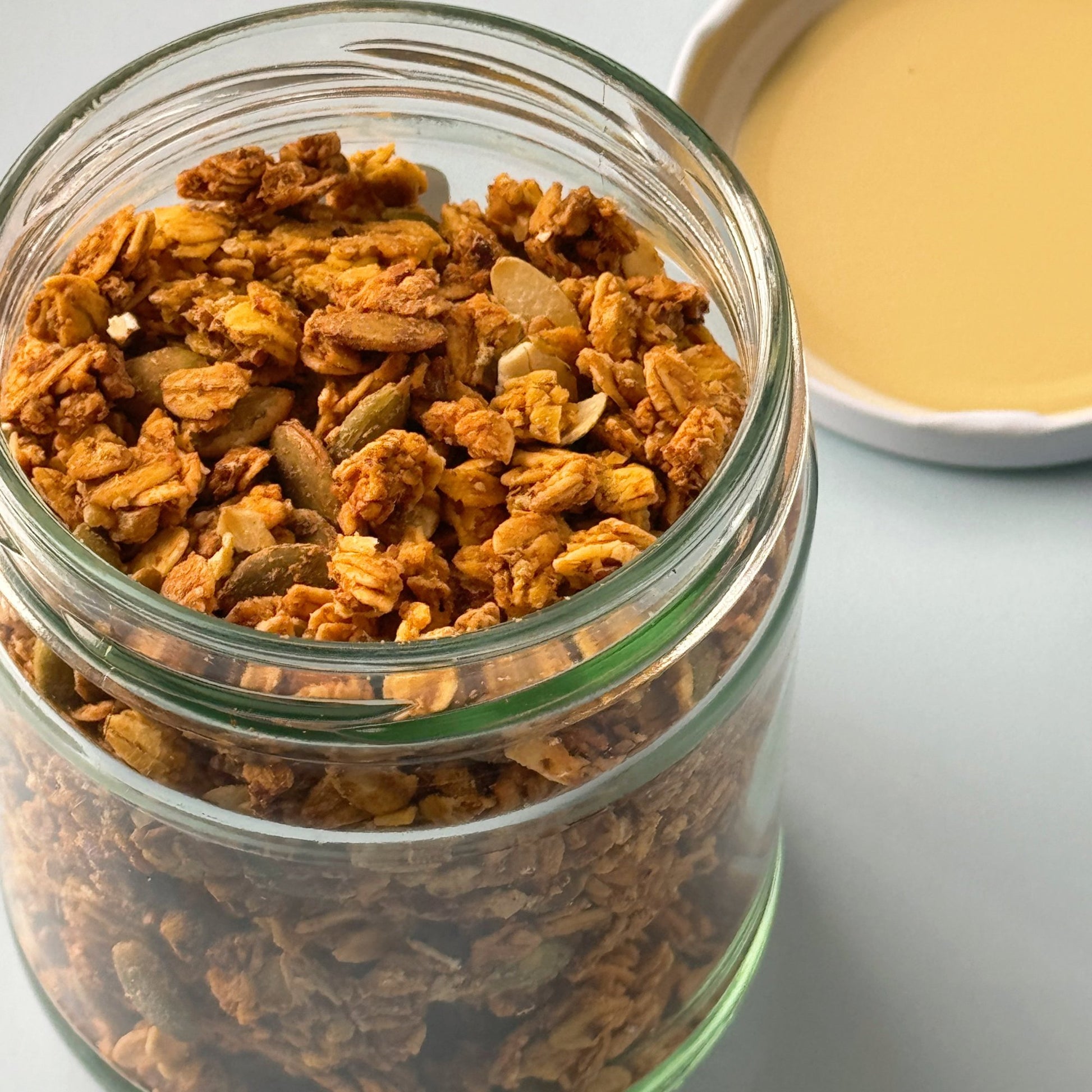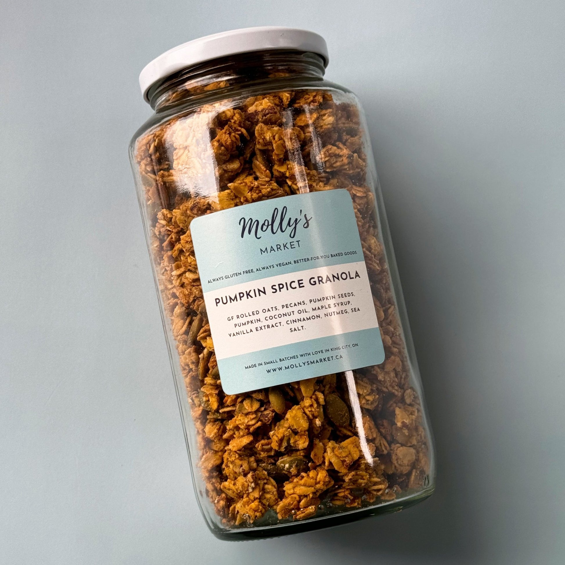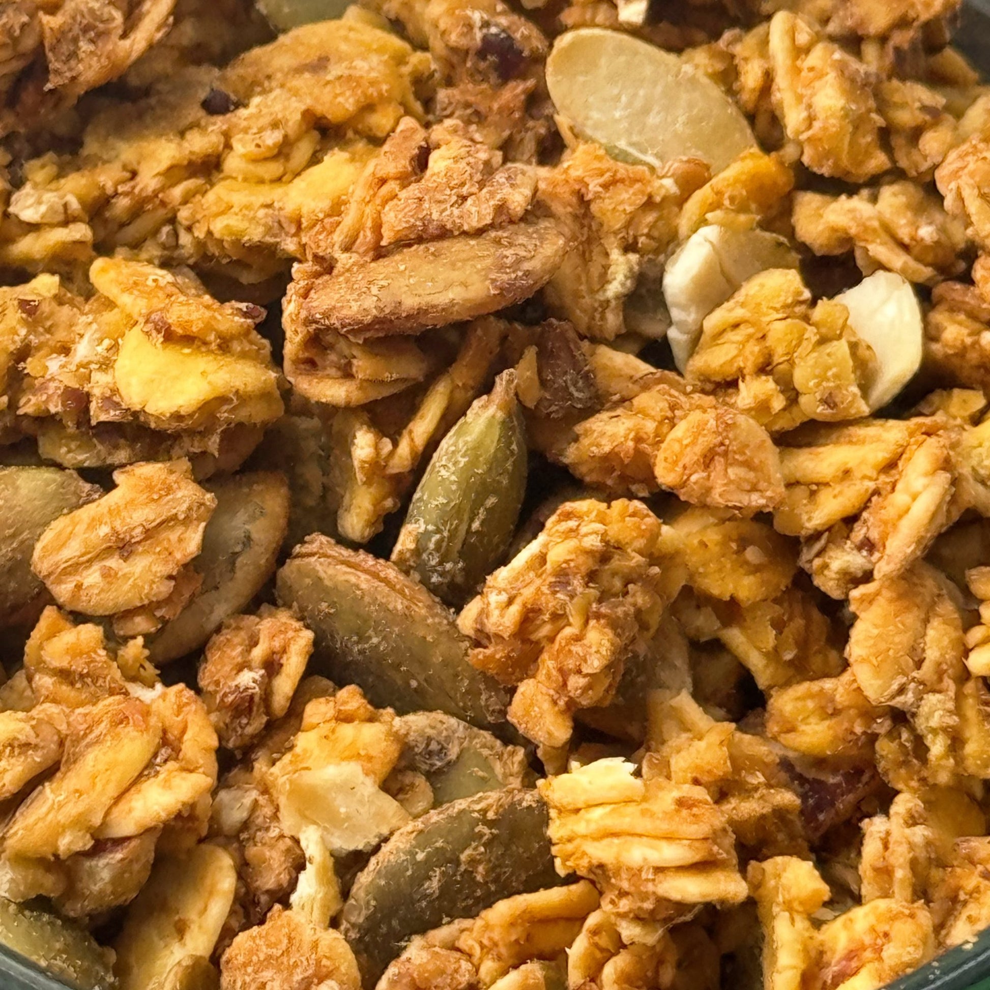 Ingredients: Gluten-free Rolled Oats, Pumpkin, Pecans, Maple Syrup, Pumpkin Seeds, Coconut Oil, Vanilla Extract, Pumpkin Pie Spice, Sea Salt